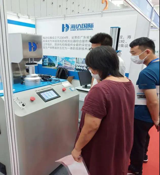 廣東海達(dá)儀器有限公司洞悉目前國(guó)內(nèi)和國(guó)外檢測(cè)設(shè)備行業(yè)市場(chǎng)現(xiàn)狀,針對(duì)檢測(cè)設(shè)備進(jìn)行研發(fā)。在本次展會(huì)上,海達(dá)展出了HD-K406口罩顆粒物過(guò)濾試驗(yàn)機(jī)、HD-B609B-S萬(wàn)能拉力試驗(yàn)機(jī)、恒溫恒濕箱,得到了參展者的強(qiáng)烈興趣和廣泛關(guān)注。