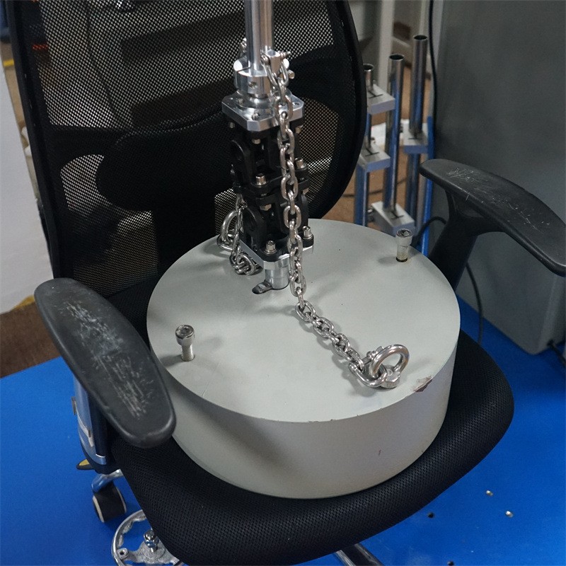 旋轉(zhuǎn)桿設(shè)計(jì)配以萬(wàn)向節(jié),靈活適應(yīng)不同角度的椅面,無(wú)論是平滑動(dòng)還是傾斜的旋轉(zhuǎn),都能保持測(cè)試的準(zhǔn)確與穩(wěn)定性。簡(jiǎn)易裝夾結(jié)構(gòu),自動(dòng)調(diào)心,使椅腳不直接受垂直力,模擬了真實(shí)的無(wú)偏心受力狀態(tài),確保了測(cè)試的精準(zhǔn)性。
